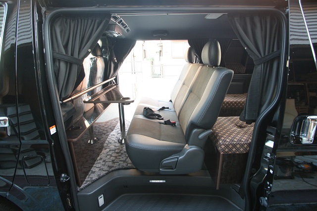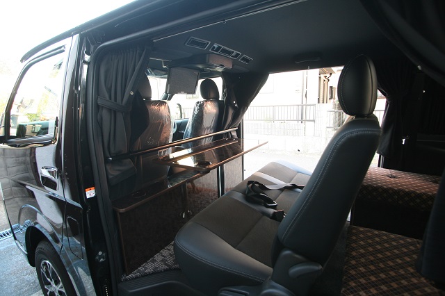 最後部には電子レンジ収納シンクカウンターシステム、全面カーテンを装備し、助手席側のシートは前後分割して脱着できるように製作いたしました。 また電装品は、走行充電式サブバッテリーシステム、正弦波1500wインバータ、DC12Vソケット、 38Lポータブル冷凍冷蔵庫、LED照明等を装備しました。その他網戸やリアガラスフィルム貼り、 フロアマット等の取付や運転席周りではフローティングナビ、12.8インチリアビジョン、ドラレコ等アルパイン製で統一してセットさせていただきました。 今まではミニバンでの旅行を楽しんでおられましたが、旅先でゆっくりくつろげるようにと、初めてこうした仕様でのご購入となったユーザー様。 これから各地でご活用いただけるのを楽しみにしております。この度は誠にありがとうございます。 |